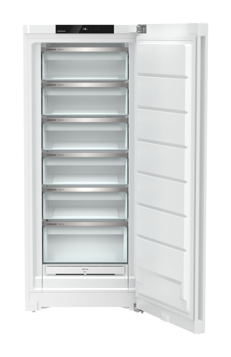 Морозильник (морозильная камера) Liebherr FNd 7026 с системой NoFrost и полезным объемом 307 литров. Отдельностоящий морозильник с шестью контейнерами вписывается в нишу глубиной 60 сантиметров, выступает только дверь. Верхний выдвижной ящик с функцией наклона. Ограничитель предотвращает выпадение ящика. С технологией FrostProtect использовать модель серии Plus можно в неотапливаемых помещениях с температурой воздуха не ниже -15℃: подвал, гараж или балкон.